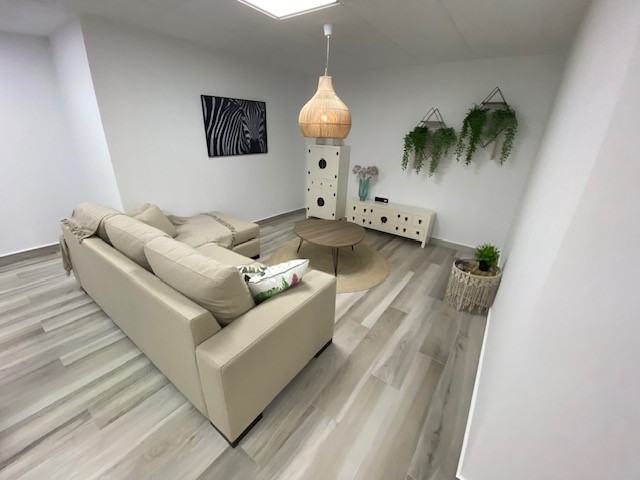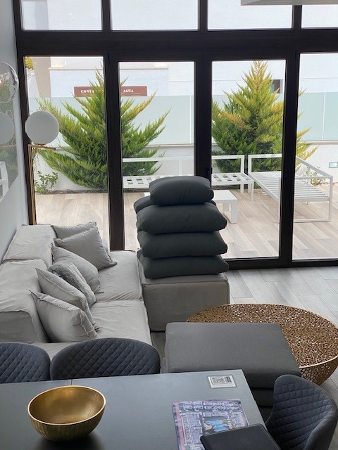 - de woonkamer met TV, van waaruit u via openslaande terrasdeuren het terras en het zwembad kunt bereiken. Op het terras is ook een ingebouwde stenen barbecue aanwezig.