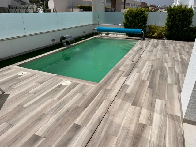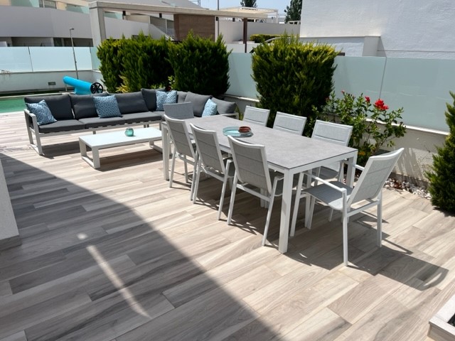 De luxe afgewerkte villa is voorzien van alle gemakken, gelegen op een perceel met een oppervlakte van 265 m2, inclusief een privé zwembad dat in de winter verwarmd kan worden. Daarnaast is er ook nog een gezamenlijk groot zwembad voor de hele urbanisatie.