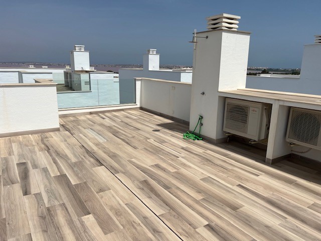 * Op de eerste etage bevinden zich 2 slaapkamers, waarvan 1 met een extra terras, het tussenterras op het terras de trap naar het dakterras.